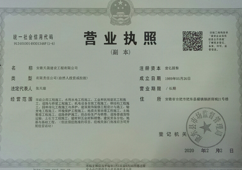 安徽天晟建設工程有限公司,是安徽省水利系統骨干企業,成立于1989年5月,公司注冊資本金10000萬元,業務涵蓋水利水電、市政和道路、工民建、火電、電網、風電、光伏等領域。是一家快速發展的現代化企業集團。